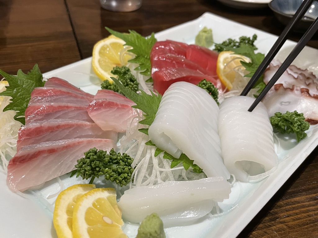 刺し盛り。なんさんこの日のイカがめちゃくちゃうまかった。全員無言でペロリですよ。