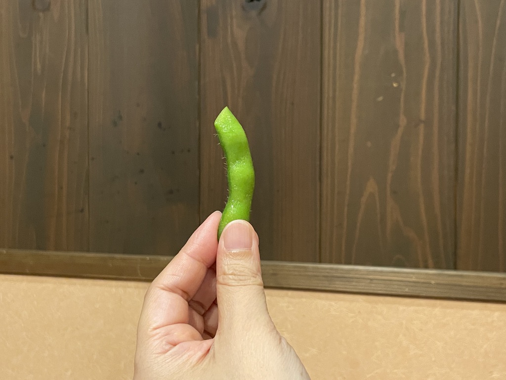 そうだ、先に来たツキダシの枝豆。先が切ってある!!このひと手間で居酒屋の良し悪しが決まるんですよ。食べやすい。