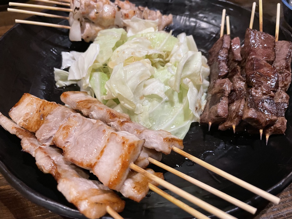 豚バラは、脂身少なめで肉感が満載。牛串も柔かったなぁ。