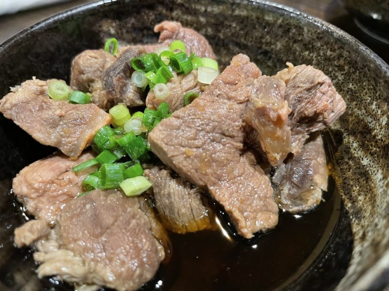 西乃里秘伝のダシで煮込んだ馬すじに、ポン酢をかけてサッパリと。馬だからもちろんNO臭み。脂身はトロけますぞ。