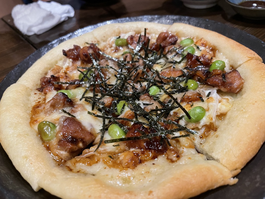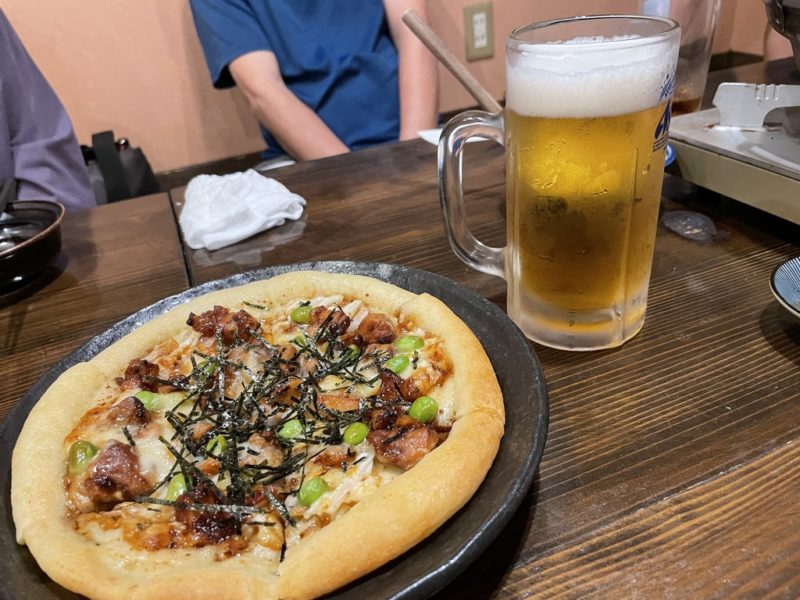 このピザは西乃里のマスターの娘さん(お店のマネージャー)が手作りした米粉ピザ。お分かりだろうか、米ON米である。モチモチ感止まらんとですよ!