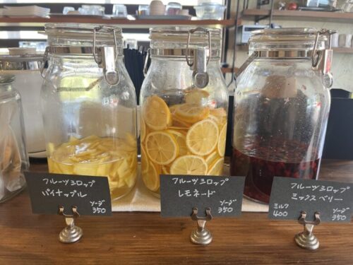 カウンターに並ぶお菓子やシロップももちろん手作り。