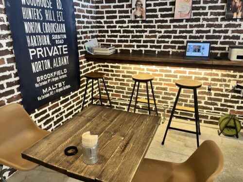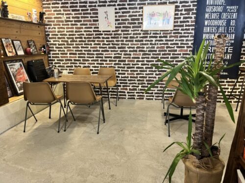 マスターお手製店内は、テーブル席が3席とちょっとしたカウンター席とこぢんまりとしていますが、各席のスペースが空いているのでゆっくり過ごすことができます。