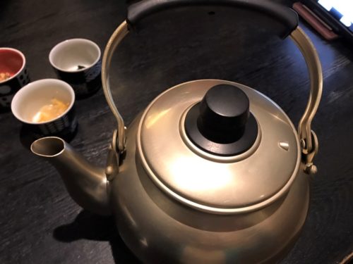 町内会の集まりや、昔ながらの定食屋で出てきそうな、アルミのやかんがいい味出してます。