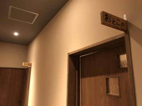 お手洗いにある「おとこの」「おんなの」の標識。こちらを裏から見ると、隠されたメッセージが…