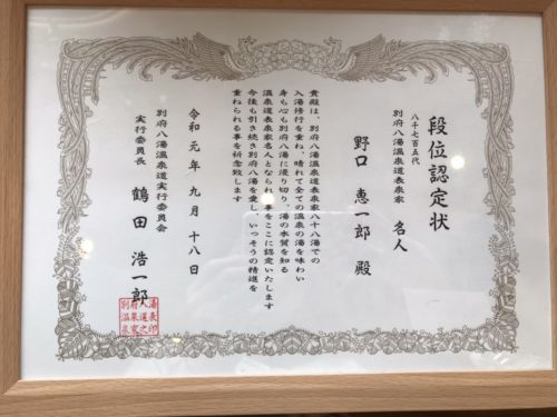 なんと、別府の八十八湯をすべて制覇され、名人の賞状も…!