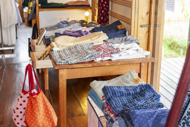 普段は洋服は一部だけで、食品や生活雑貨などを並べているんですけど、今だけいろんなメーカーや工房からたくさん取り寄せてるんですよ。