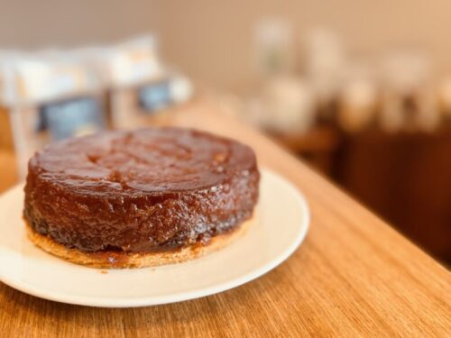 ホールが焼きあがったばかりということで、見せてもらいました。タルトの香ばしさ、キャラメリゼの甘さとほんのり湧く苦味とリンゴの酸味が味わえます。