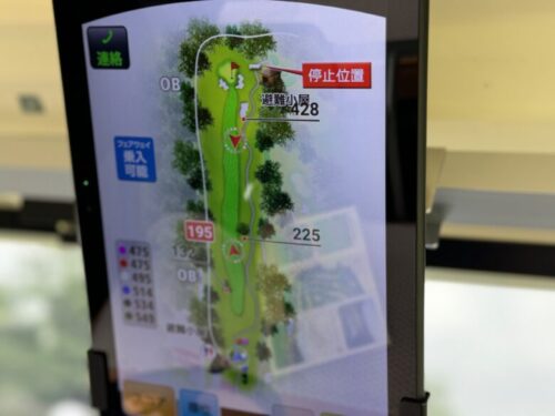 カートにはこのようなナビが搭載。前のグループもGPSでどこにいるのかが分かるようになっているので、追い越してしまうことがないように把握ができます。