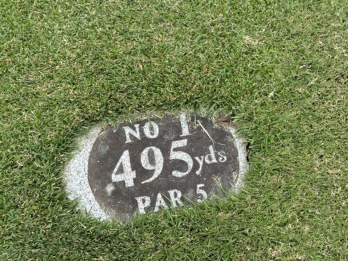その目標が素人では高いのなんの。ちなみに最初に回った1番ホールのパーは5。つまり5回しか打てないってことですね。