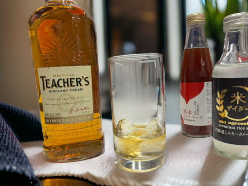 「この2本はティーチャーズハイランドクリーム!ティーチャーズは爽やかなスモーキーさと、力強いコクを持っていらっしゃるので、それに負けない力強そうなサイダーを選びました」