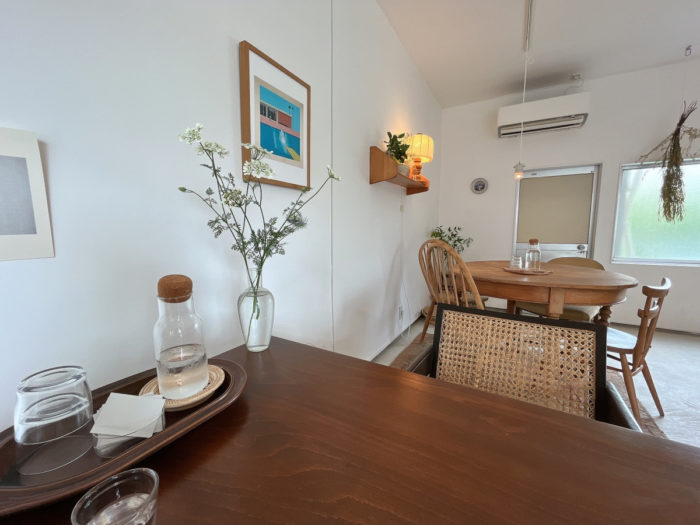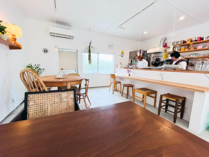 店内に入ると白を基調としており、そこにナチュラルな木目のテーブルや椅子がなんともマッチしています。ふんわり可愛い空間です。