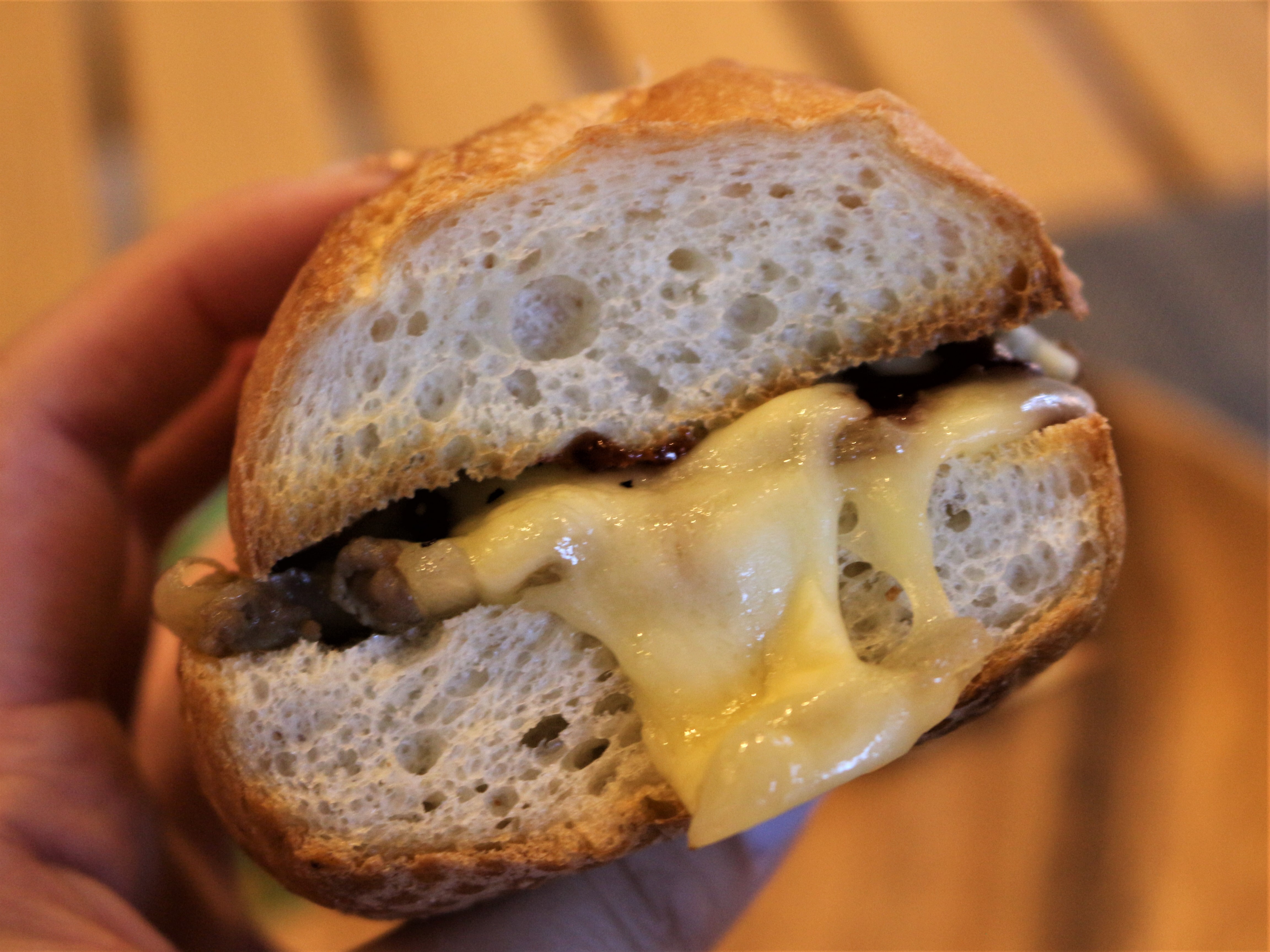 こちらチーズとビーフのぎゅうぎゅうサンド。席に到着すると「わ~美味しそう」という声が聞こえてきました。見た目100点満点!とっても美味しそう。