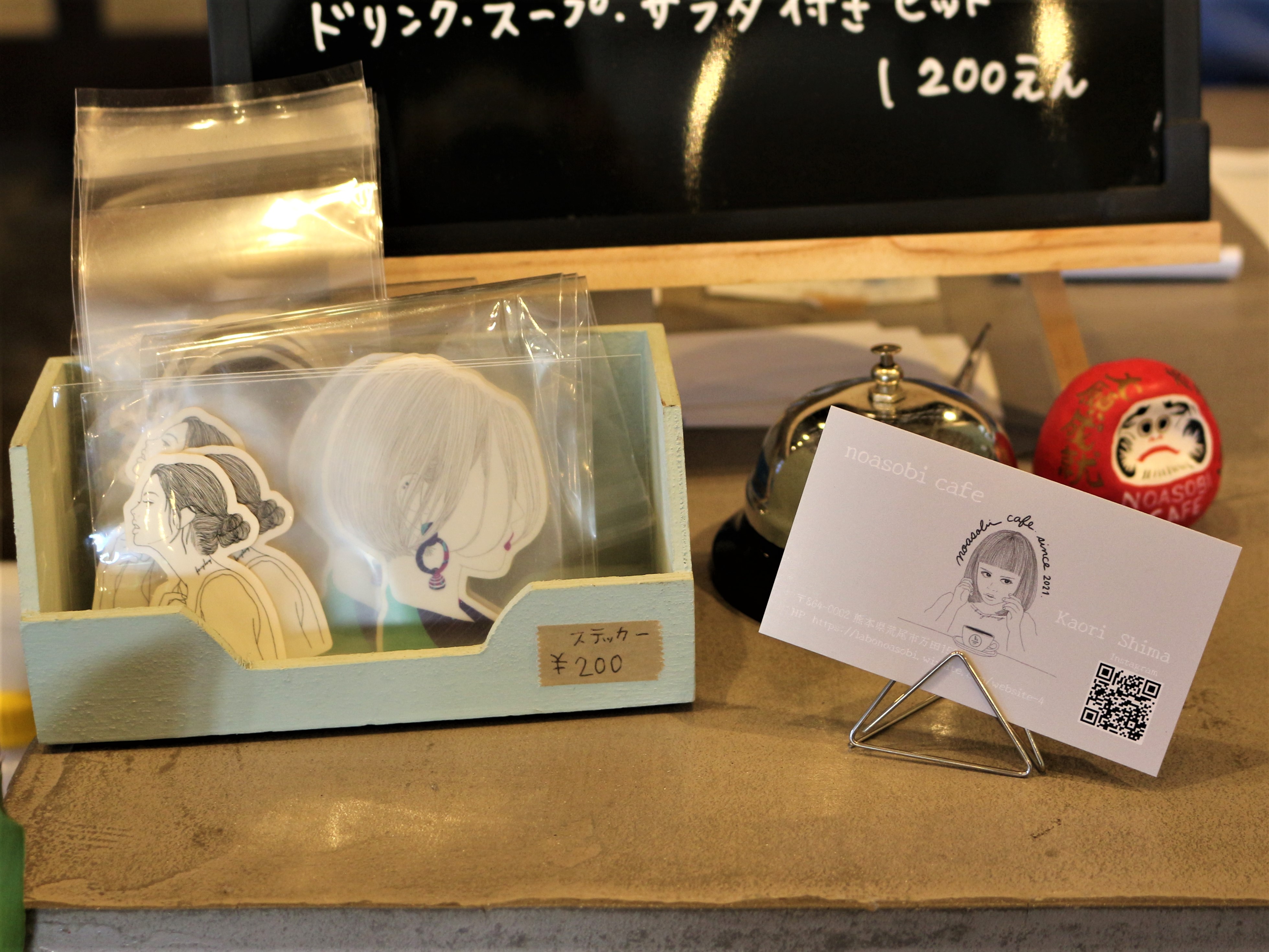 お店は親子で営業されています。娘さんはイラストレーターもされていて、レジには娘さんが描いたイラストのシールも販売されていました。