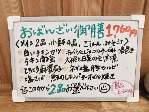 普段、野菜が摂れない方に野菜をたくさん食べて欲しい!という想いから、小鉢は野菜中心です。