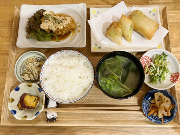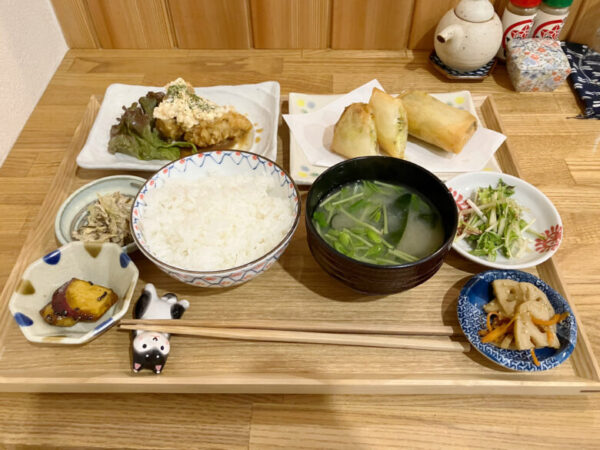 メインのお料理は、人気メニューのチキン南蛮とキャベツとじゃこのチーズカレー春巻きをセレクト。