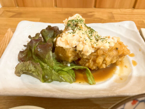 チキン南蛮には、甘酢と店主が試行錯誤して出来上がったタルタルソースがたっぷり掛かっています。