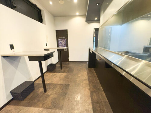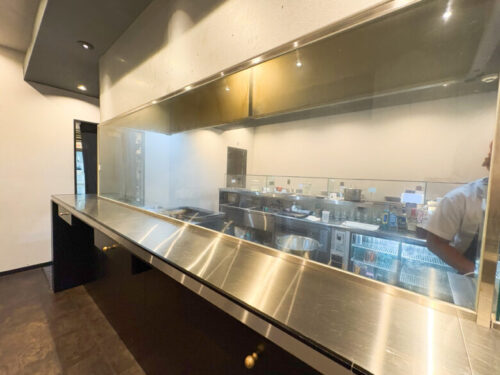 カウンター席は、シルバーの台がいい感じ。その下の引き出しにはおしぼりや箸が入っていました。
