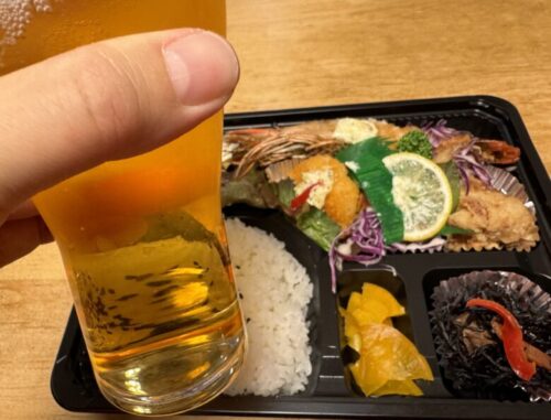 全盛りのお弁当とビールで頂きまーす!幸せすぎる夜です。