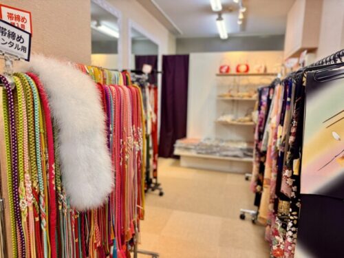 2階に上がると、着物や卒業袴が所狭しと並んでいます。