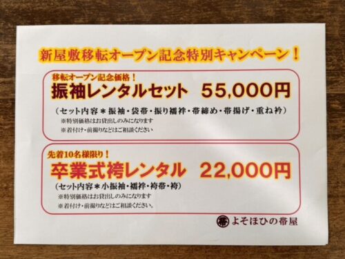 移転オープン記念の振袖レンタルセット価格55,000円だそうです!