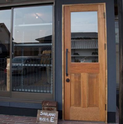 見た目はTHE日本家屋なサクラキノイエの入口は、どこでもドアを彷彿させるオシャレな片開き。