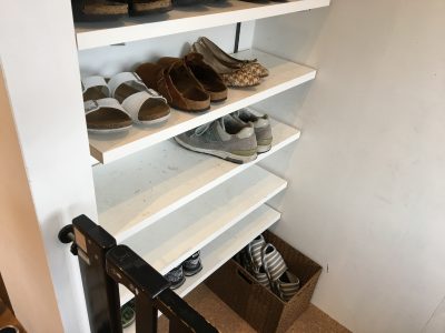 ドアに付けられた窓からは、これまたオシャレなシュークローゼットを垣間見ることができます。