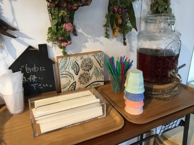 胡粉ネイルの隣には、これまたフリードリンクのほうじ茶♡