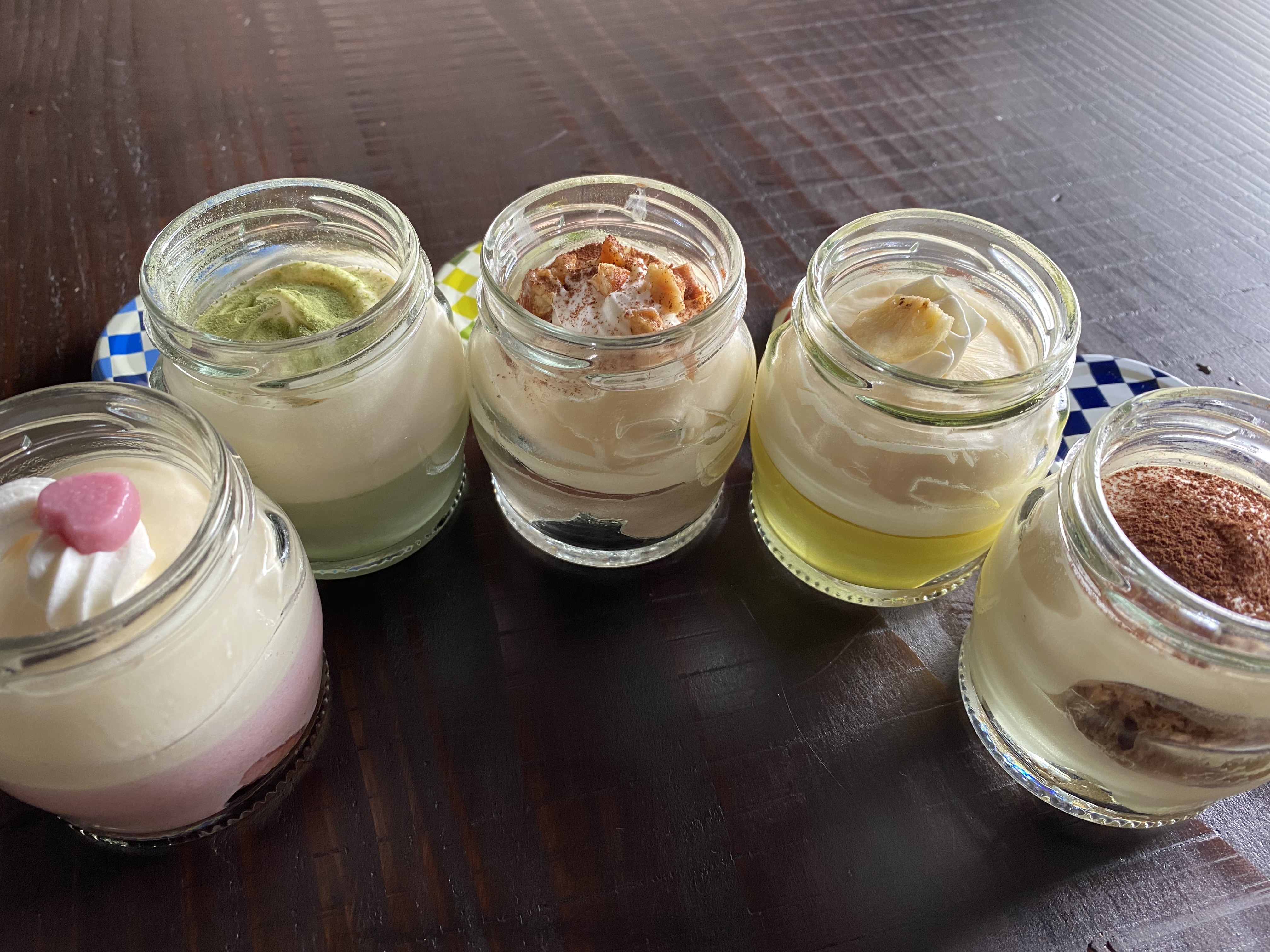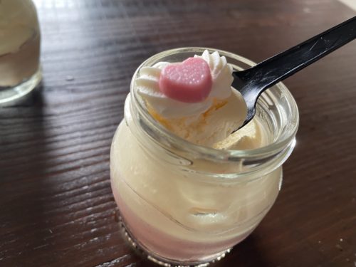 種類はプレーン、バナナ、抹茶、ストロベリー、生チョコの5種類。1個390円です。小瓶に入ってかわいい!