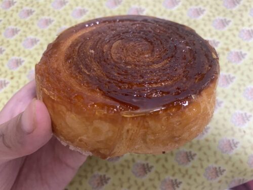 クイニーアマンは外側のカリッとした触感と中のふわふわのギャップが楽しい、フランスの伝統的な洋菓子パン。バターがふんだんに使われていて、パンの中では一番ケーキ感がありました。