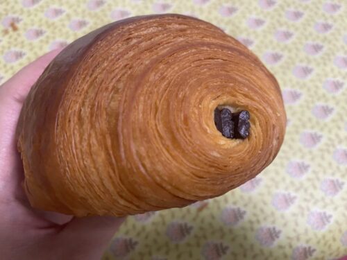 中のチョコがビターが効いていて、たっぷりのカフェオレが飲みたくなるパン・オ・ショコラ