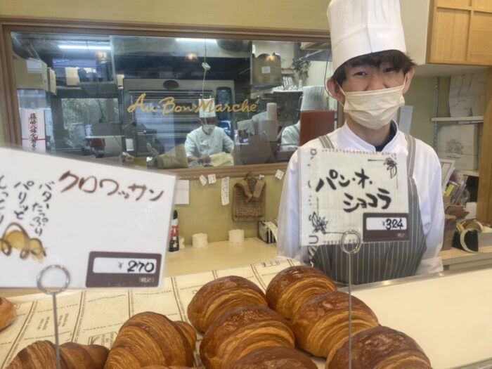 店長の福本さん。オ・ボン・マルシェは昔からあるケーキ屋さんだけれど、お若い店長さんだな…?と思ったら、父さんの後を継がれた2代目の店長さんなんです!ちなみに初代店長のお父様もご一緒に働かれています。(画像厨房中央)
