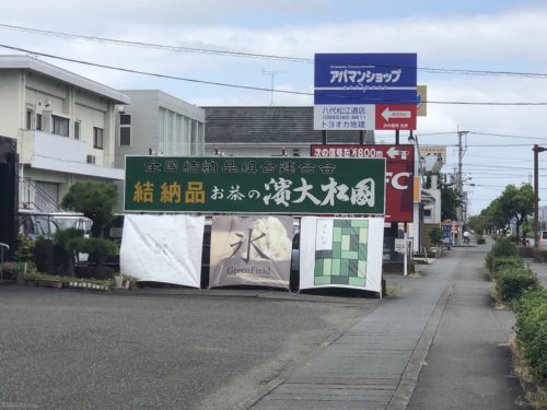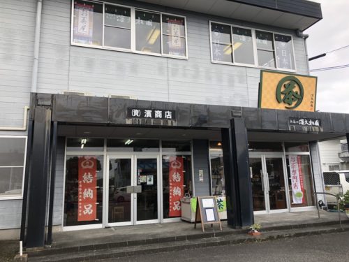 臨港線途中にある、創業1962年と八代でも有名な老舗のお茶屋さんが【お茶の濱大松園 臨港店】。ここに噂のカフェがあるはずなんです。看板とかないけど、入ってみましょう。