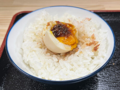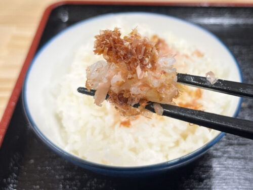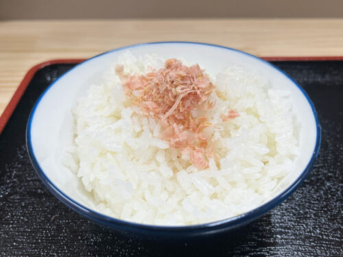 ご飯も色々な食べ方ができるので、是非お試しください。そのままラーメンと一緒に、鰹節を掛けて、ラーメンの半熟玉子を乗せて、ラーメンのスープにドボンして。