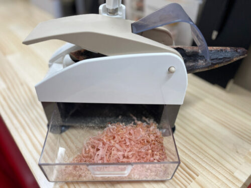 席に設置してあるこちらは、鰹節削り器。