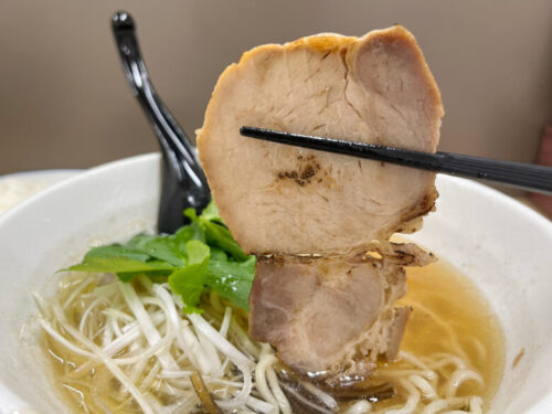 トッピングには大きめの炙りチャーシュー。お肉は柔らかく、とても香ばしい。