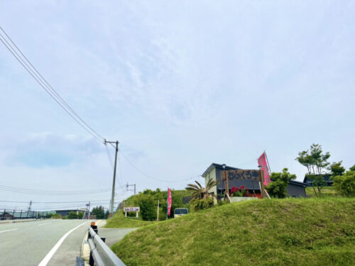 大津方面から新阿蘇大橋を渡ってすぐ左へ曲がり、坂道をのぼっていくと右側に「おふくろ亭」が見えます。