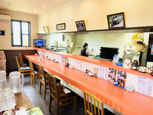 店内はカウンター席6席のみ。温かみがあってこじんまりとした空間です。入店早々、店主がにこやかに出迎えてくれてそのままカウンター席に着席。