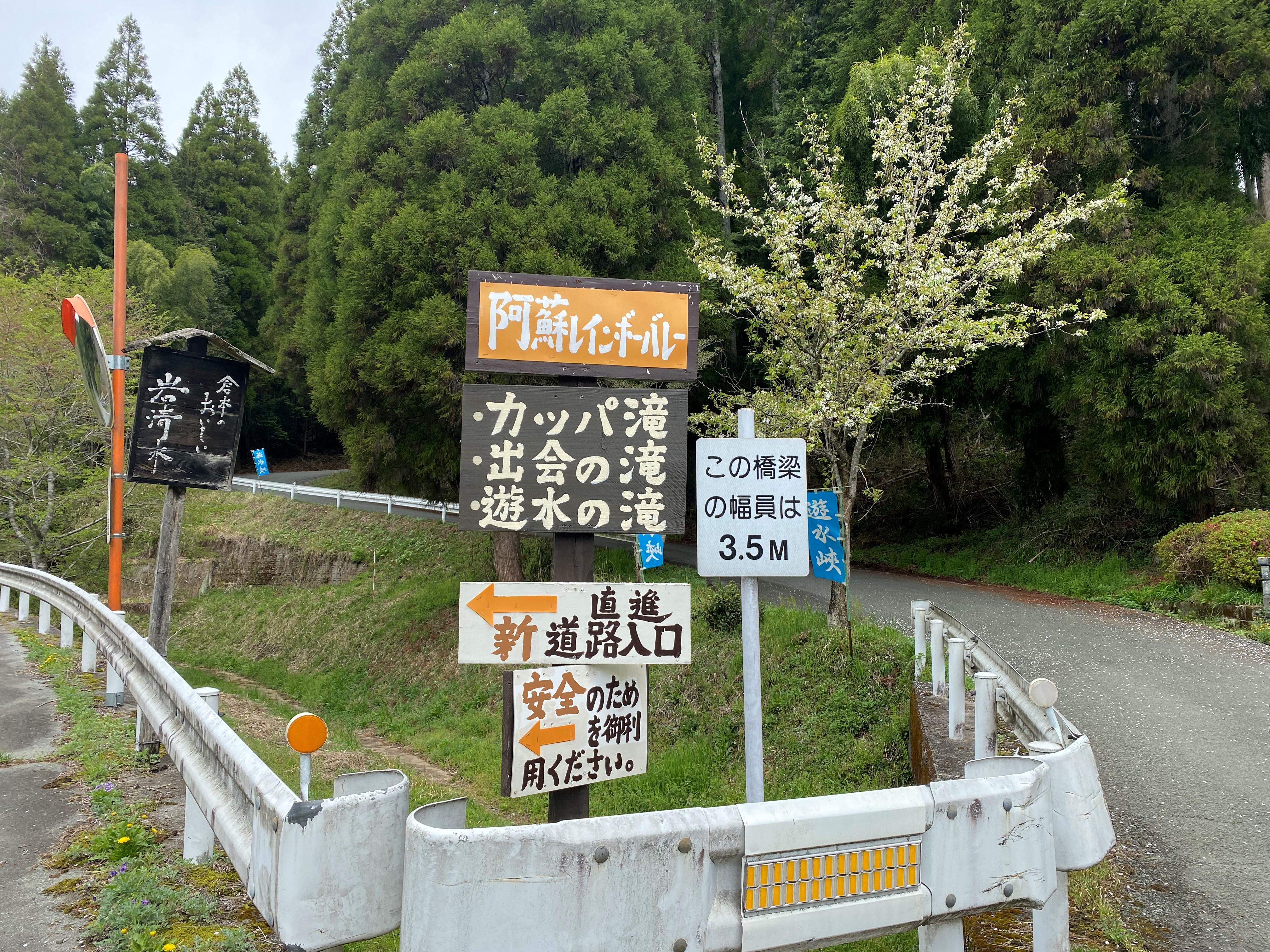 そこで小国町役場で聞いたところ「民間の遊水峡さんが運営しているので、そこの駐車場に向かうといいですよ」と教えてもらいました。再度目的地を「湧水峡」へ変更し出発。