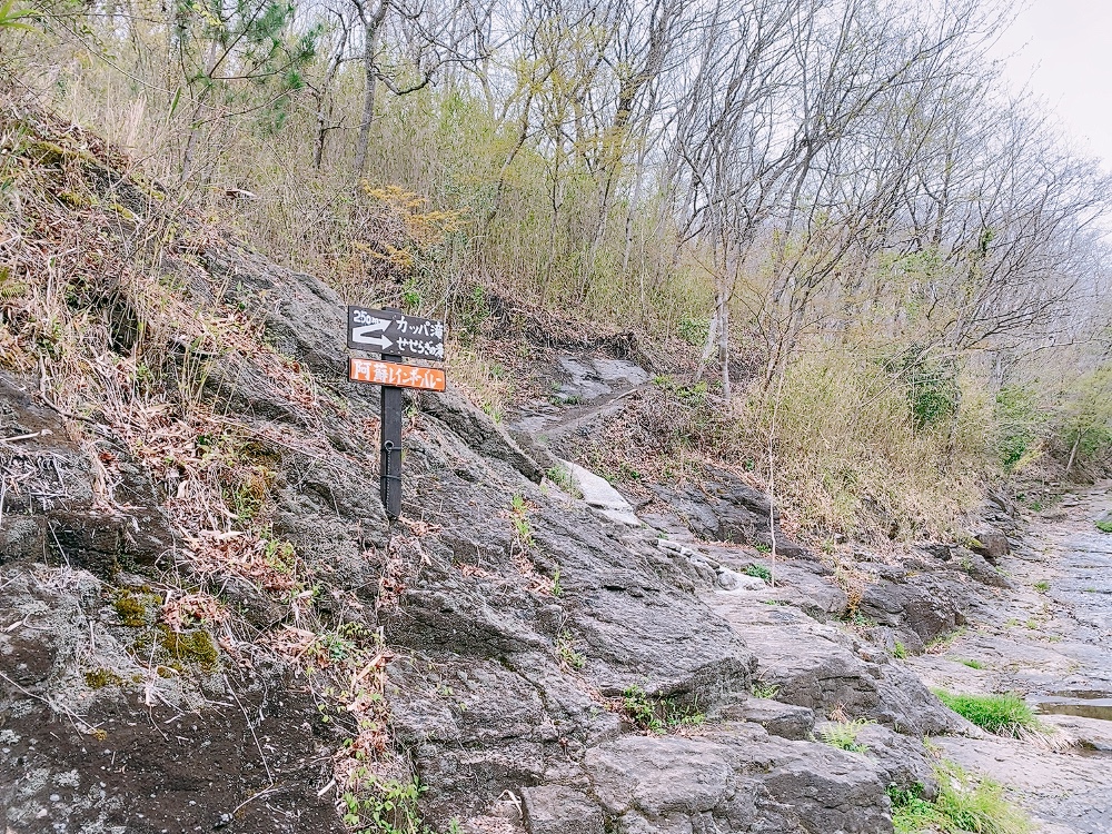 やっと看板見えてきた!しかし気のせいでしょうか。目的地であるカッパ滝は斜め上と表示されているような。