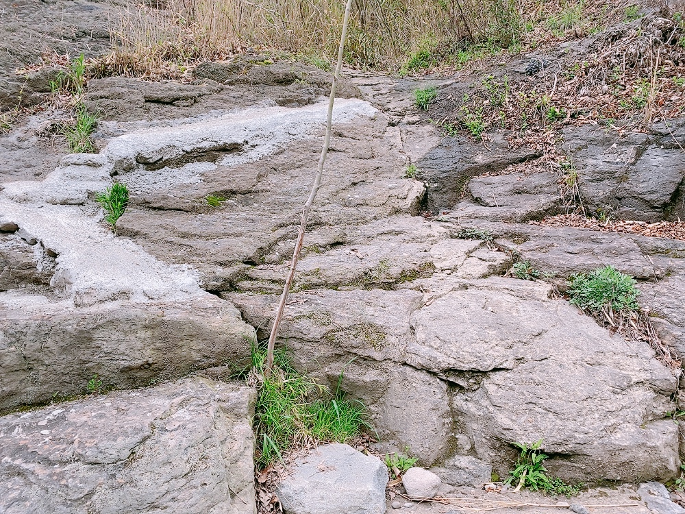 左側に歩道らしきものが!「気を付けてね」って言っていたのはきっとここのことなんでしょう。1歩1歩転ばないよう慎重に歩いていきましょう。