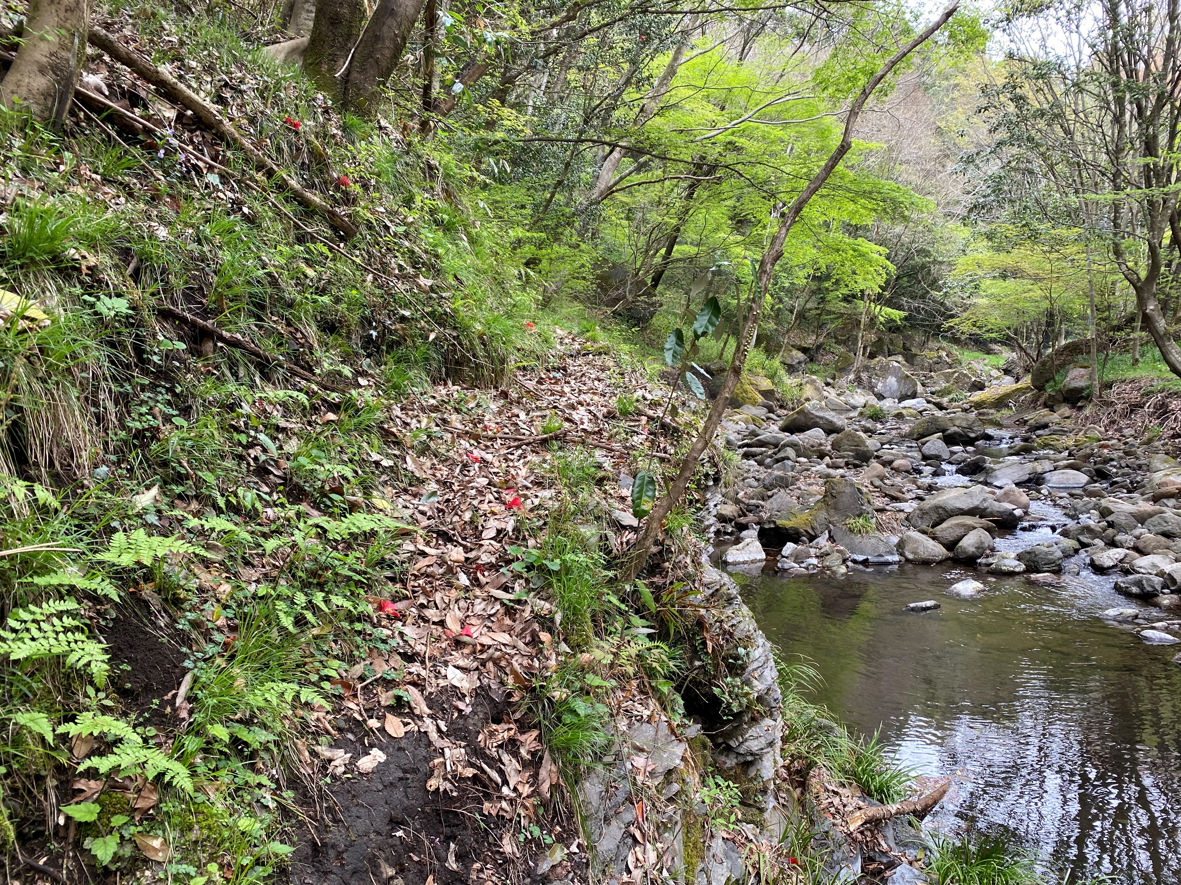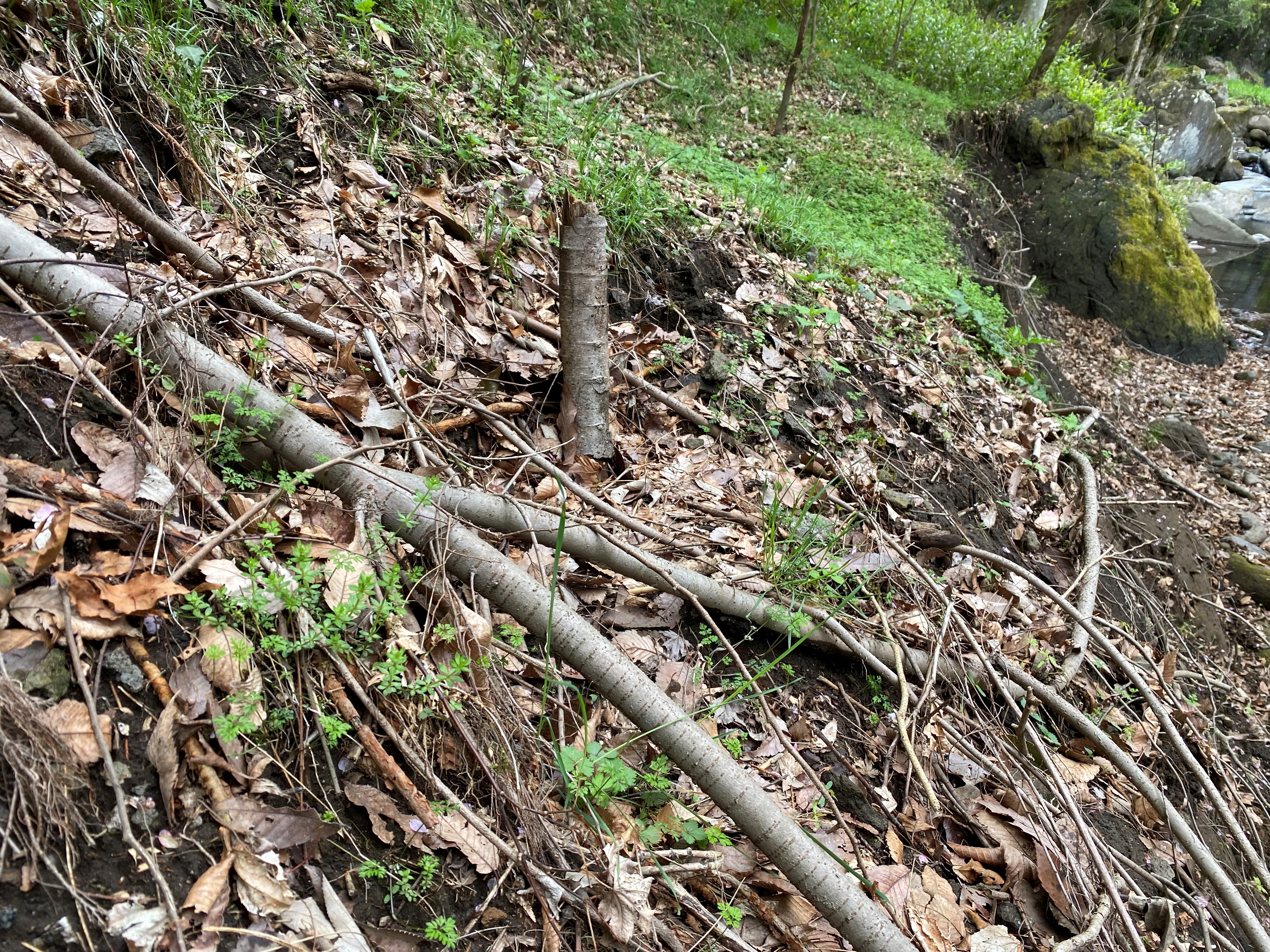 二足歩行で行くよりも、地面に這いつくばっていたほうが助けてくれるものが何なのかよく分かる。自然の根っこありがとう。あなたのおかげで真下にあった川に転落せずに済みました。