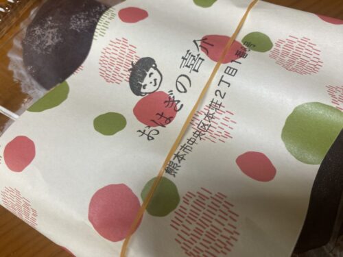 包装紙のデザインも店長さんが自らされていて、このイラストは店名の由来でもあるお孫さんの喜介くんの似顔絵です。インスタにお写真が載っていましたが、滅茶苦茶そっくりでした。