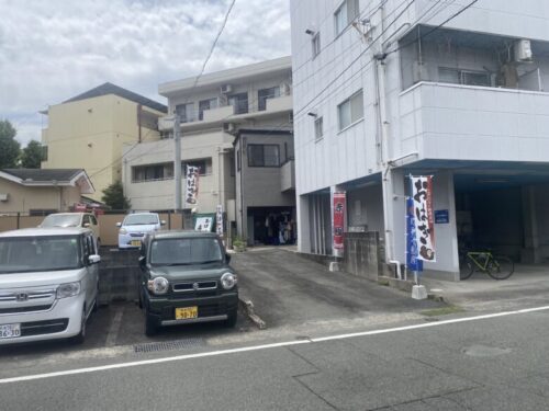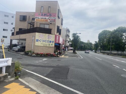 産業道路を熊本大学病院方面へ進み、花屋の看板を目印に左折します。