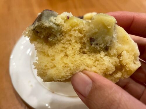 ごろごろのお芋が甘くてやわらかいのはもちろんのこと、蒸しパン生地もしっとりしていて、まったくパサつきがなく、こちらもぺろりと食べられる美味しさ!