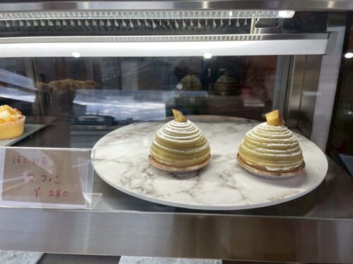 ショーケースの中には、お芋のマフィンやケーキなど、お芋を使ったスイーツがいっぱい!