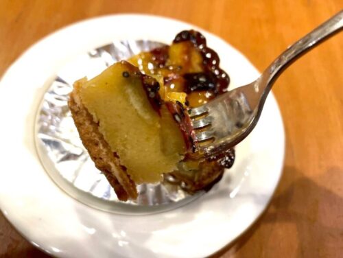 フォークを入れてみると、しっとりと柔らかく、下のタルト生地はカリカリ!