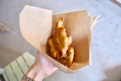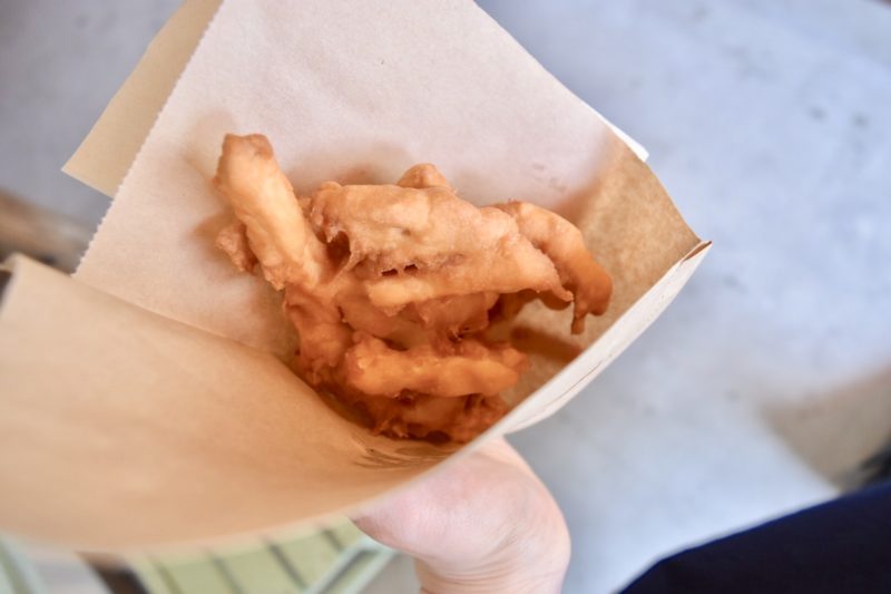 棒状にカットしたさつまいもは、無添加純なたね油、みじん切りした生姜、さらに炭酸水を加えて揚げているそう。油っこくなく、何個でも食べられる気がします。