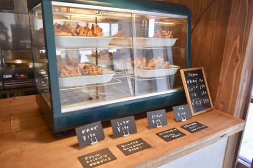 座ると何か落ち着くベンチで、揚げたてを食べることもできます。明るい店長と話しながら食べると美味しさもアップ!