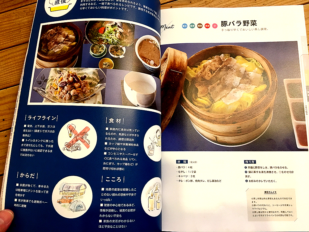 発災直後の炊き出し活動の後、県外の支援団体の方々との交流を深め、復旧・復興と流れていく中で、この炊き出しレシピ本「おいしいミニ炊き出し レシピブック」を作ることになったそうです!